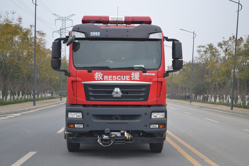 采用重卡地盤改裝,根據不同搶險救援需求,配備偵檢類、警戒類、救生類、破拆類、照明類、個人防護類等救援器材,為應急救援提供專業的救援裝備,也可以作為照明車、電源車使用。