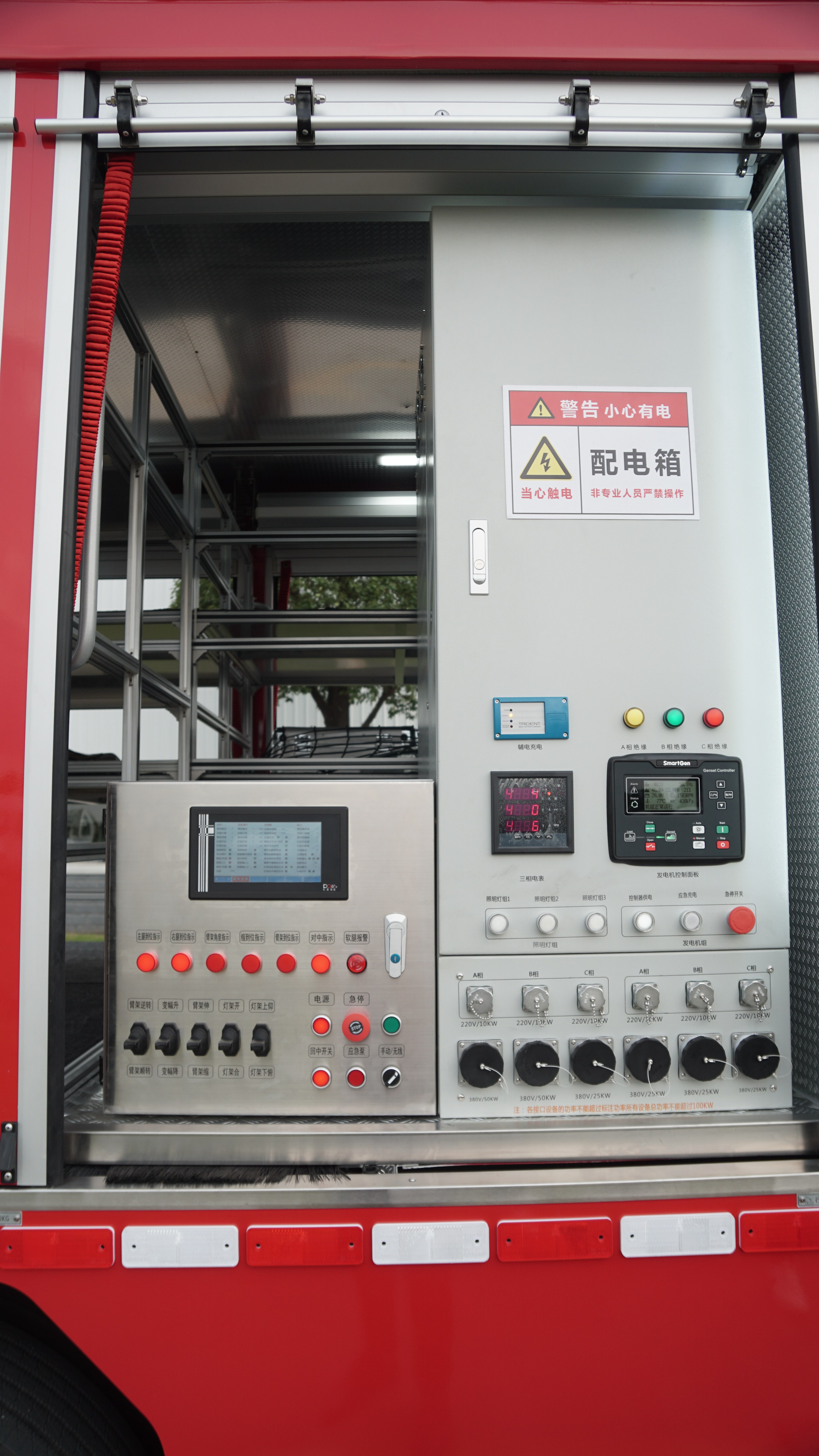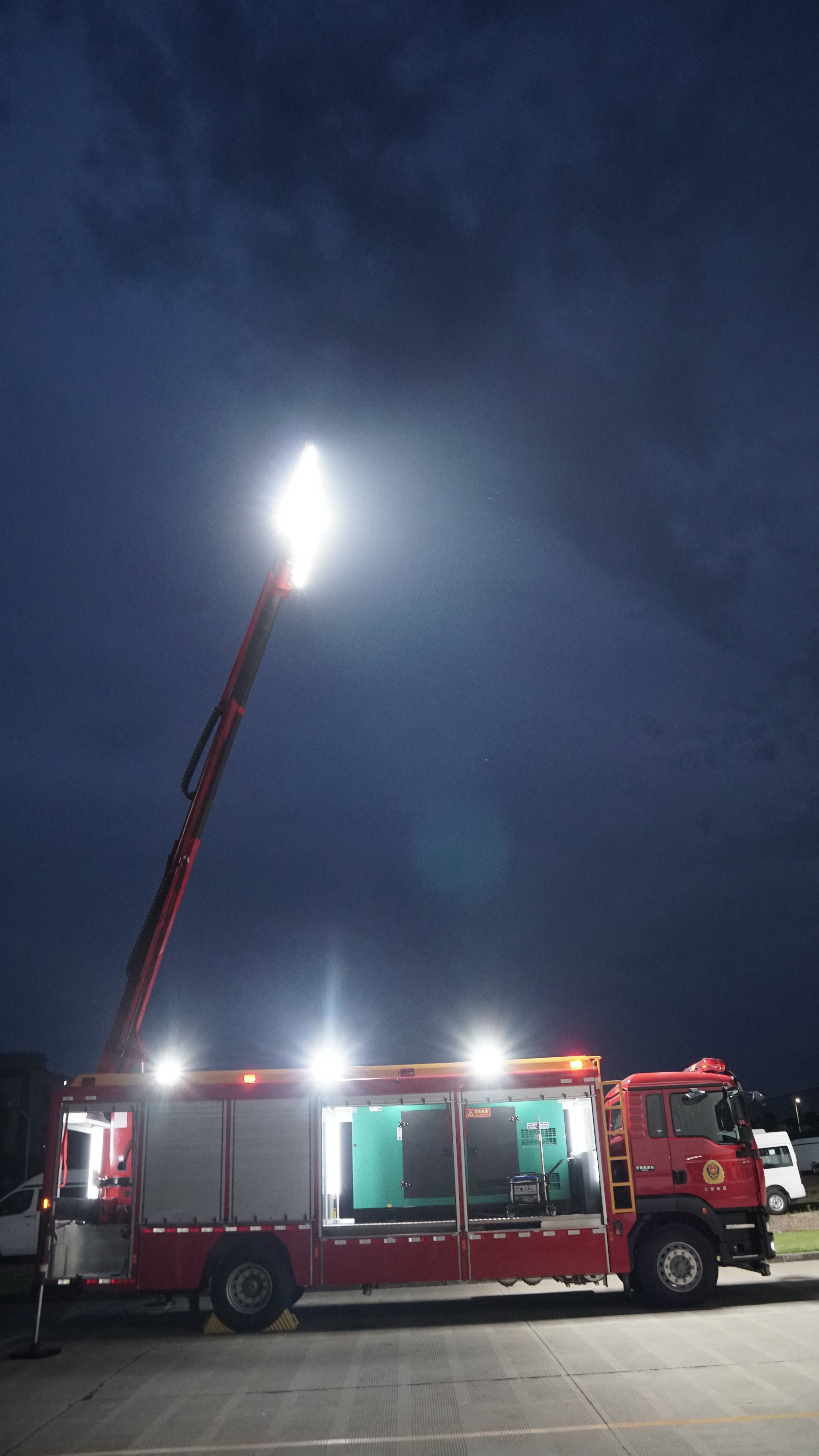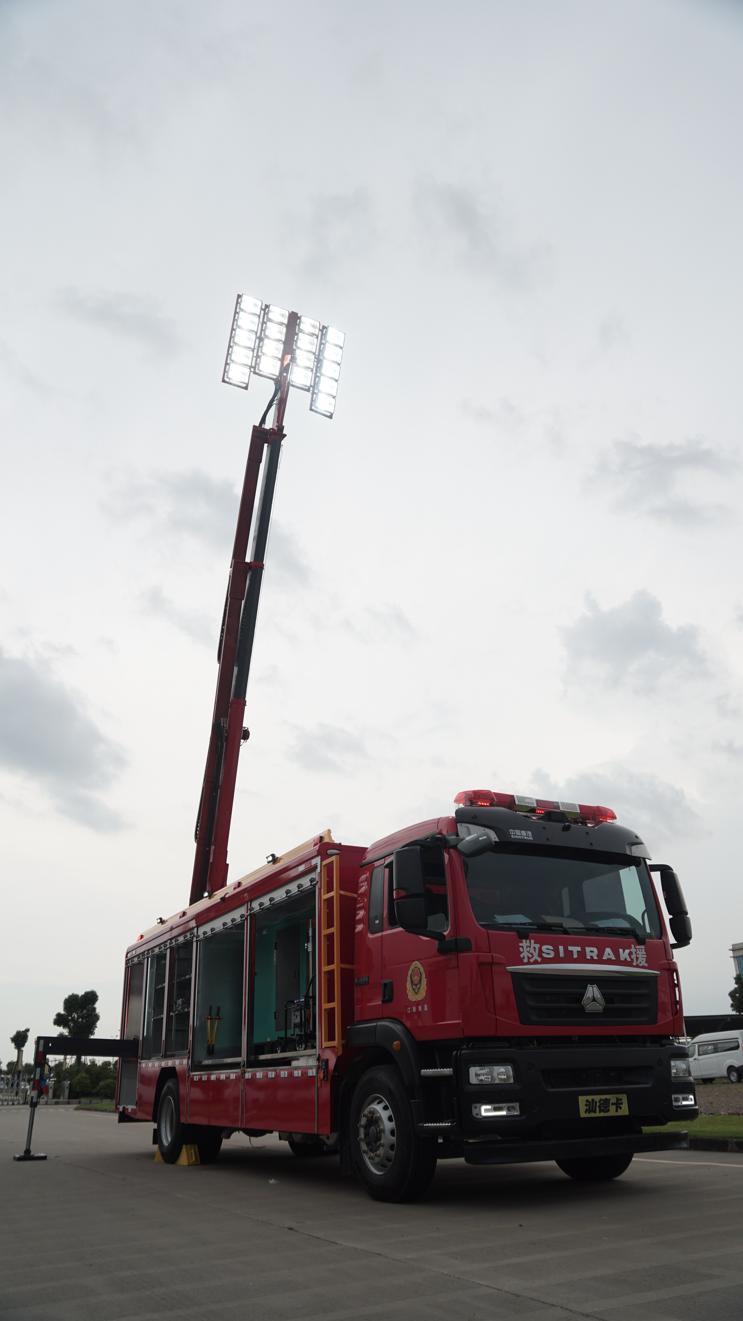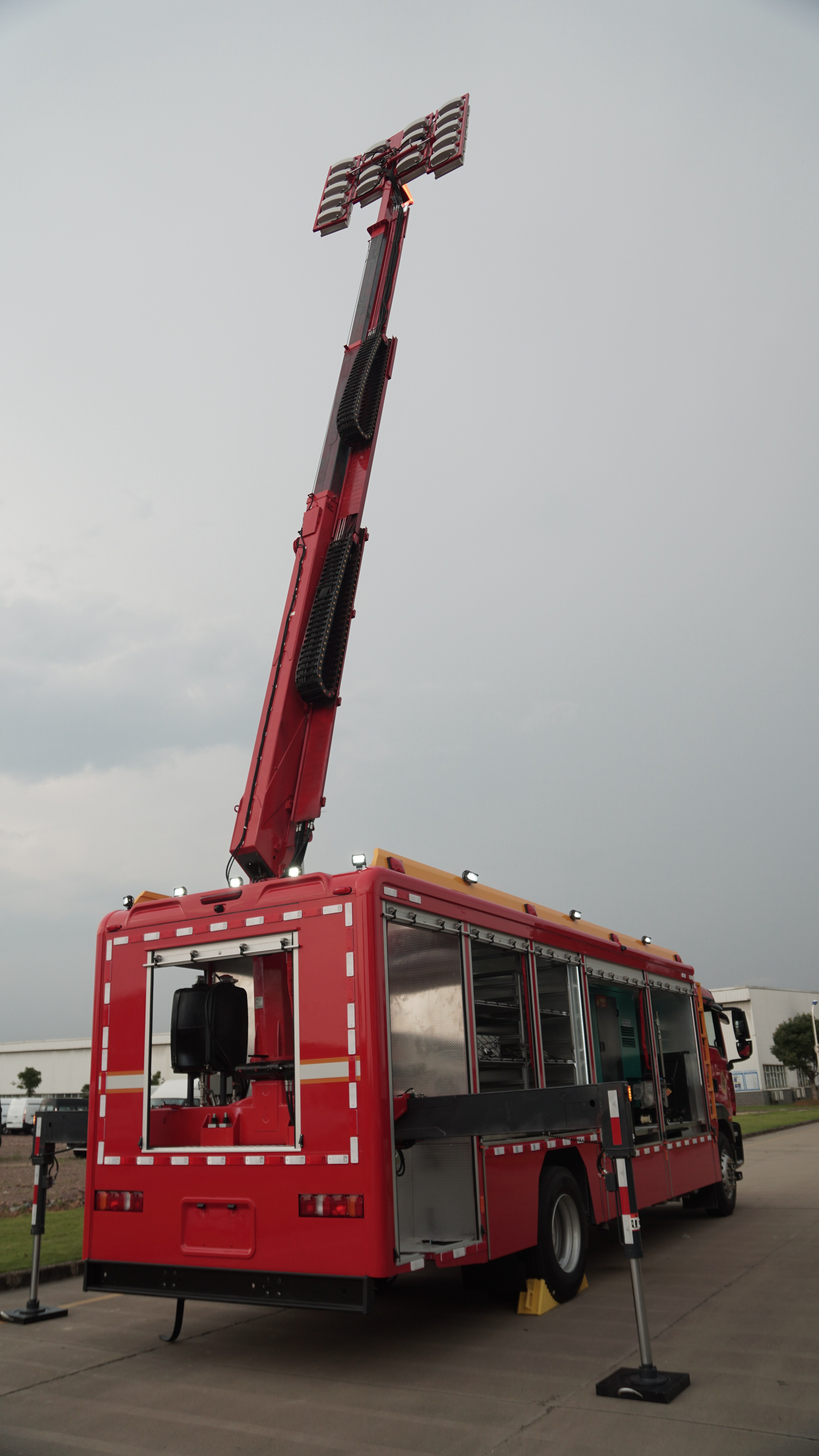 配備高空舉升式照明系統、大功率發電機組、定制裝備柜、專用消防救援工具等,具有照明高度高、作業范圍大、抗風能力強等優點。