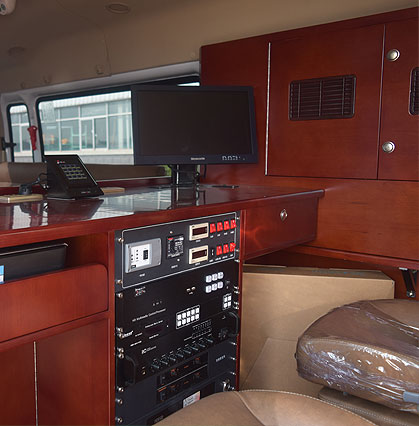 車輛內置車載功放、車外顯示屏等宣傳系統,以及可確保設備正常運行的外接市電配電系統,為人員提供更好的作業氛圍。