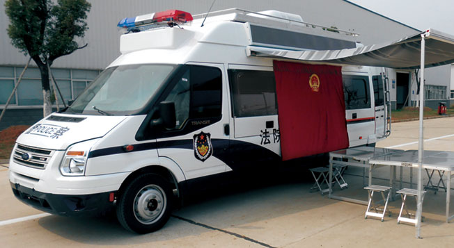 適用于法院審判載客,具備現場立案、調解、審理等流動法庭功能和流動普法宣傳功能。
