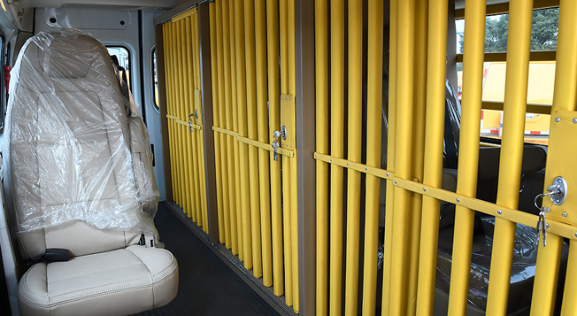 警員與嫌疑犯面對面看護,可同時押解3~4人。