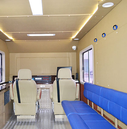 采用優質鋼材焊接的車架及萬向轉盤,懸掛有抗震功能的彈簧鋼板,使得移動警務室更加符合流動執法“靈活機動,快速集結”的特點。?