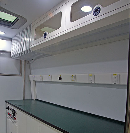 改制版車體采用櫥柜總成設計,可滿足人員存取需求,同時設有內裝飾系統,為人員提供高效作業環境。
