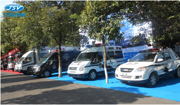 2014年9月2日至4日,來自全國各省、自治區(qū)、直轄市公安廳、鐵道、交通、民航、林業(yè)、海關等行業(yè)公安局警務保障部門領導齊聚貴陽,參加由公安部警用裝備采購中心組織的2014年警用車輛推介活動。江鈴改裝車公司此次攜江鈴N800查報車、江鈴新世代全順防暴突擊車、江鈴新世代全順移動警務車、江鈴域虎皮卡交警執(zhí)法車4款產品震撼亮相,受到了各地公安系統領導的一致好評。