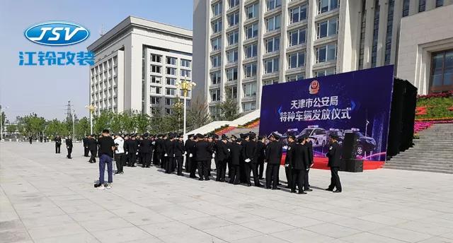 天津市公安局舉行特種車輛發放儀式,江鈴改裝順利交付55輛警用車,助力天津公安,將全方位提升天津市公安執法水平和效率。