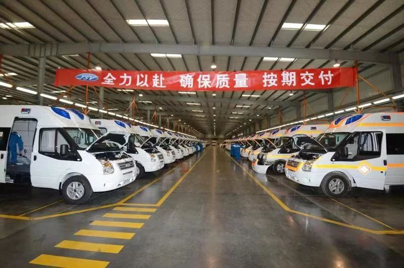 截至2月12日,江鈴共生產了100多輛救護車交付疫情防控一線,圓滿完成了國家下達的生產任務。同時,數百輛底盤車生產也已完成下線。集團所屬15家救護車上下游企業的3500多名干部職工全面復工復產,以更大的強度和力量為全國疫情防控一線提供堅強保障。