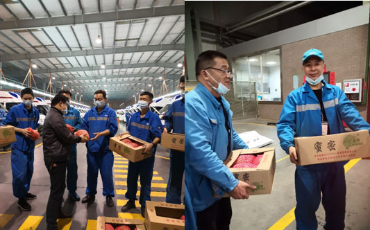 4月8日晚上,改裝車生產一線的員工依然在加班加點的辛勤工作,黨總支帶著香甜的哈密瓜前來慰問,詳細了解了疫情期間生產一線職工工作內容,輪崗、值班制度,并再次詢問了各車間相關防疫工作的具體執行情況,同時為他們的付出表示了深深地感謝。